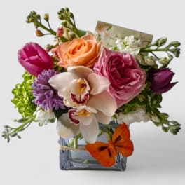Price: $159.95 Bold Jewel-Tone Butterfly Bouquet-Roses, Orchids & Hydrangeas | Haddonfield & Haddon Township Delivery Product Tags: Next-day Delivery