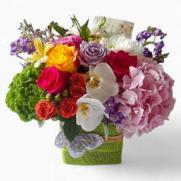 Price: $159.95 Bold Jewel-Tone Butterfly Bouquet-Roses, Orchids & Hydrangeas | Haddonfield & Haddon Township Delivery Product Tags: Next-day Delivery