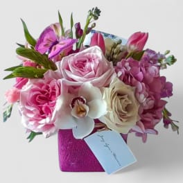 Price: $129.95 Lavender & Violet Orchid Birthday Bouquet - Designer's Choice Bestseller Product Tags: Best seller Same-day Delivery