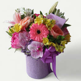 Price: $129.95 Lavender & Violet Orchid Birthday Bouquet - Designer's Choice Bestseller Product Tags: Best seller Same-day Delivery