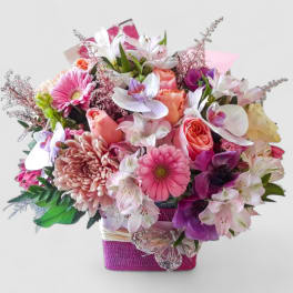 Price: $129.95 Lavender & Violet Orchid Birthday Bouquet - Designer's Choice Bestseller Product Tags: Best seller Same-day Delivery